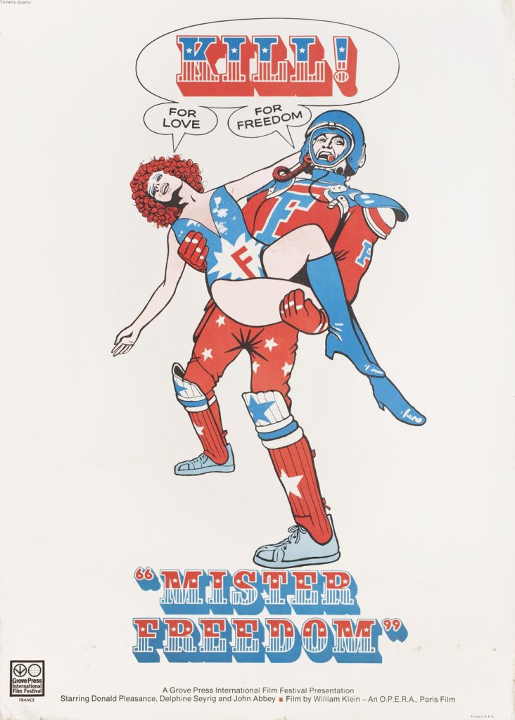 “Mister Freedom” is a 1969 satirical film directed by William Klein that parodies American politics and culture. The film follows the adventures of a superhero named Mister Freedom (played by John Abbey), who is sent to France to defend American interests against a group of left-wing radicals.