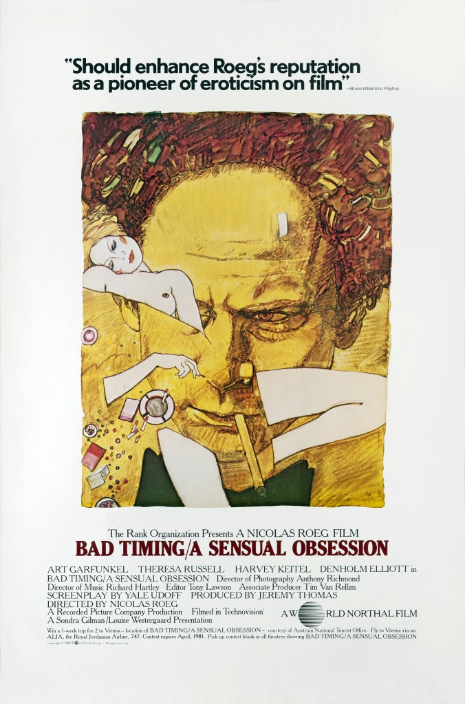“Bad Timing / A Sensual Obsession” is a 1980 psychological thriller directed by Nicolas Roeg and written by Yale Udoff. The film is a complex exploration of human relationships, obsession, and morality. Set in Vienna, it follows the intense and tumultuous romance between Alex Linden, an American psychiatrist, and Milena Flaherty, a troubled, free-spirited woman.