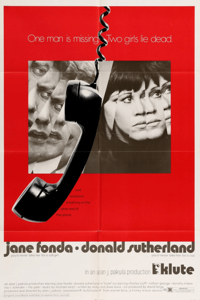 “Klute” is a 1971 psychological thriller directed by Alan J. Pakula and is considered a classic of American Cinema. The film follows the story of Bree Daniels (Jane Fonda), a high-priced call girl working in New York City. Bree is approached by John Klute (Donald Sutherland), a small-town detective investigating the disappearance of his friend, Tom Gruneman.