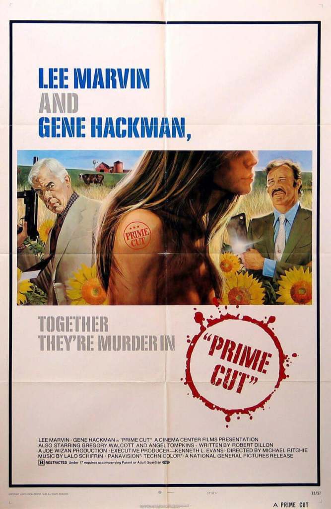“Prime Cut” is a 1972 action-crime film directed by Michael Ritchie, starring Lee Marvin and Gene Hackman. The film follows Marvin’s character, Nick Devlin, a Chicago mob enforcer sent to Kansas City to collect a debt from Hackman’s character, Mary Ann, a corrupt meatpacking tycoon who uses his business as a front for his human trafficking operation.