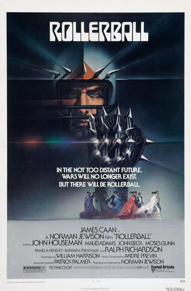 “Rollerball,” starring James Caan, is a 1975 science fiction thriller directed by Norman Jewison.