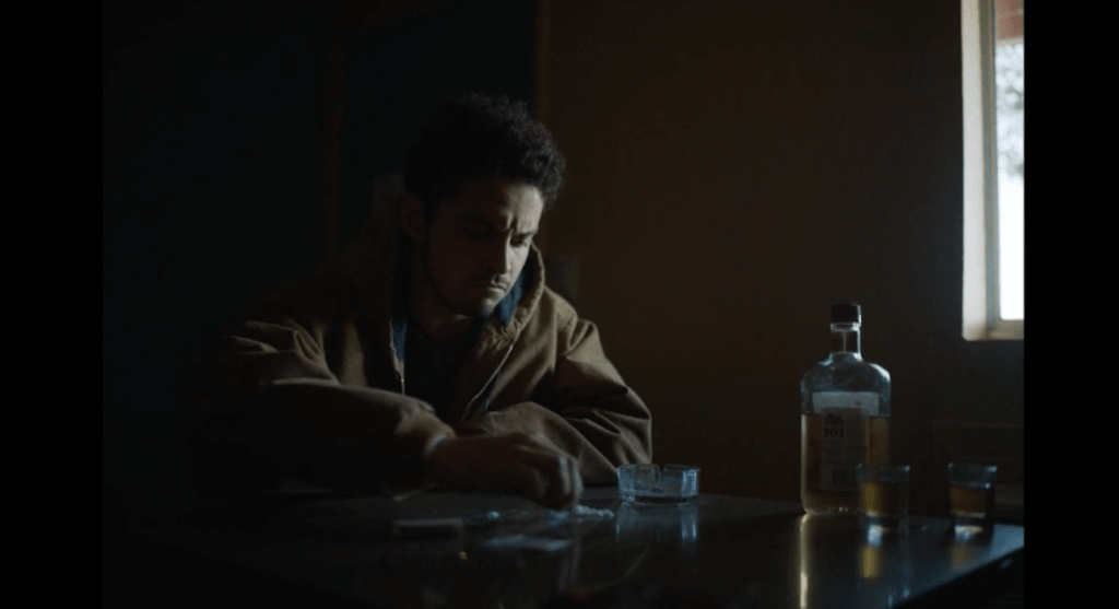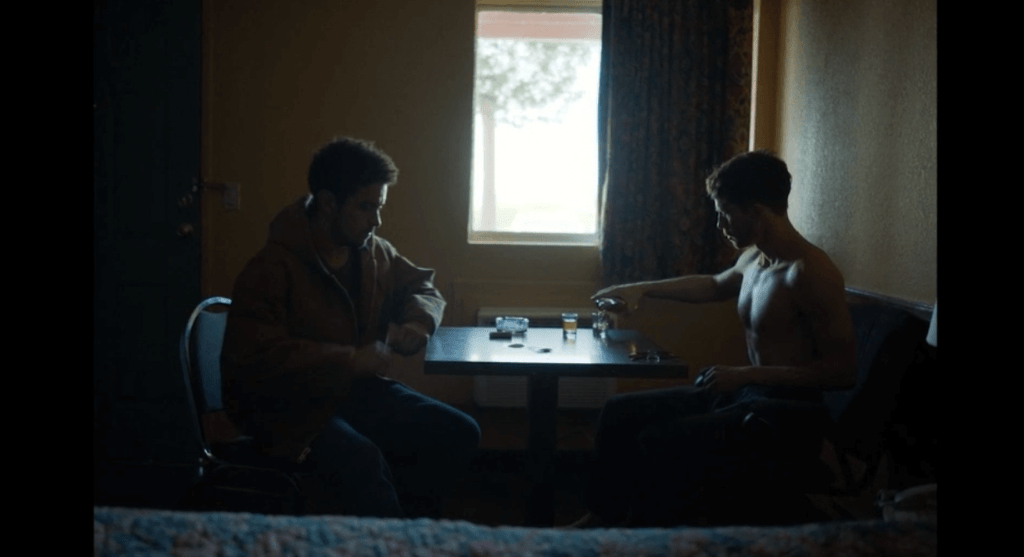 Hank leaves the motel where they are staying, checking first that Harper is passed out; he then drives into town to meet Lucy. Upon meeting Lucy, he asks if she can be his sponsor, to which she tells him it’s not allowed in AA and then questions his faith. She explains that the only thing that helped her was to learn to forgive herself. In a moment of self-discovery in which she momentarily lets her guard down to reveal that they are both alkies, she leaves Hank with a note of wisdom and reaffirms that his self-suffering can be eased only by himself.