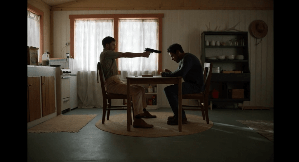 We then cut to Harper and Hank as they drive through the desert on the way to kill Lucy. Hank tries to defend Lucy by questioning the act they are about to engage in, but Harper calls Hank out that he knows that he attended an AA meeting by following him but forgives him. As they arrive, Harper tells Hank that “you can’t change who you are,” to which Hank replies, “You can change what you do,” as if recognizing the first steps to forgiveness and starting the healing process. Harper affirms that it’s too late for that.