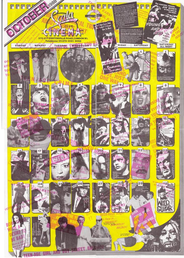 Intended to be an alternative National Film Theatre, the Scala Film Club (which took its name from Scala House, it’s original home on Tottenham Street in the Fitzrovia area of London) moved to this venue in 1981 under the management of film producer Stephen Woolley.