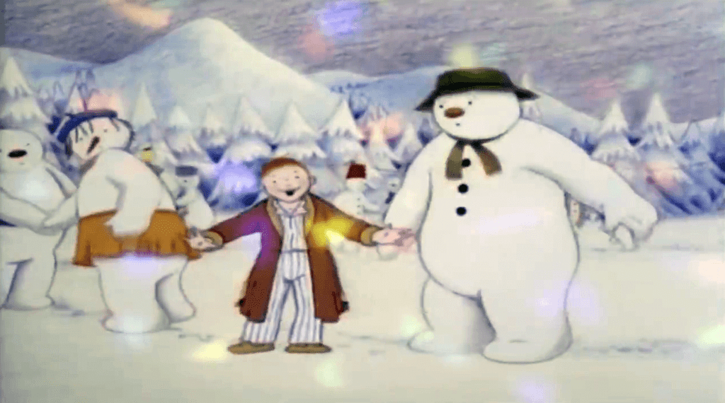 One charming moment is when he interrupts a costume party and is presumed to be a guest in an unoriginal costume. The sequence ends as he pays a visit to the land of the Snowmen, where we meet up with an impromptu cameo with James and The Snowman from the book and film of the same title, seemingly returning the favor as Father Christmas appeared in the same sequence in the film ten years prior.