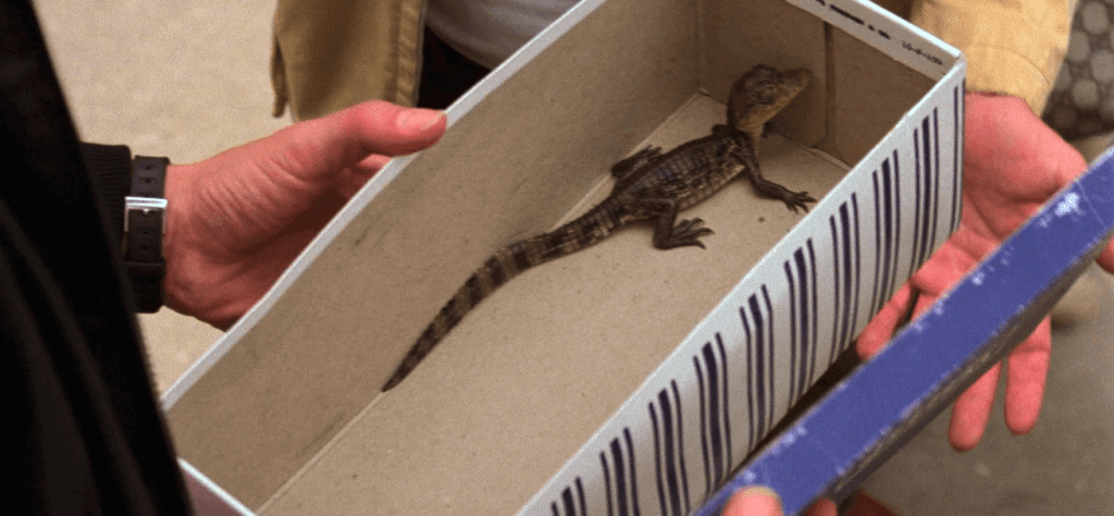 “Alligator” is a 1980 horror film directed by Lewis Teague (of The Dukes of Hazzard and Cat’s Eye fame) . The movie follows the story of a baby alligator flushed down the toilet by a careless pet owner who ends up in Chicago’s sewers. Over the years, the alligator survives and grows, feeding on the carcasses of animals used in illegal experiments and chemicals dumped into the sewer system.