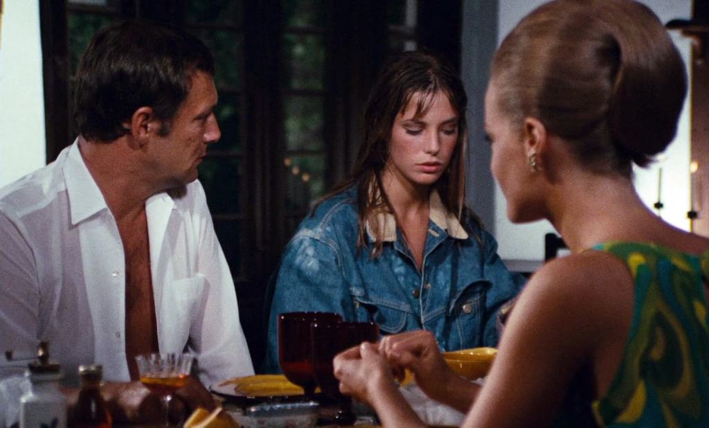 The story revolves around a glamorous and idyllic vacation shared by Jean-Paul (Alain Delon) and Marianne (Romy Schneider), a strikingly attractive and seemingly content couple. Their tranquil holiday at a picturesque villa takes an unexpected turn when Harry (Maurice Ronet), an old friend of Jean-Paul’s, arrives with his alluring and uninhibited daughter, Penelope (Jane Birkin).