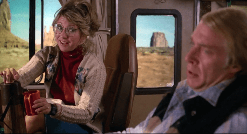 Among the characters drawn to the town are Duane Hansen (Beau Bridges), a copy machine repair man and aspiring children’s book writer, and Carmen Odessa Shelby (Beverly D’Angelo), a waitress taking her deceased mother’s ashes to Florida. Snapper (Howard Hesseman), Ericka (Teri Garr), Little Billy (Peter Billingsley), and his sister (Jen Thompson), who are vacationing across the country in their RV. Two bank robbers from New York (George Dzundza, Joe Grifasi,) Carol (Jessica Tandy), an elderly woman with a drinking problem, and her husband (Hume Cronyn), driving to Florida to retire, a cocaine dealing hitchhiker played by Daniel Stern, two nuns (Geraldine Page and Deborah Rush) and a wannabe Country singer (Paul Jabara) who is hauling a truck full of exotic animals to Ticlaw.