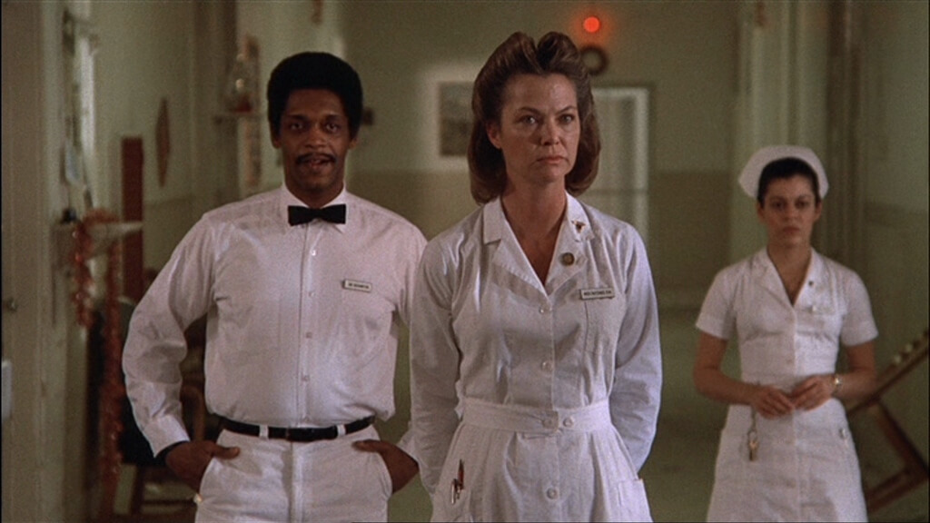 McMurphy is transferred to a psychiatric hospital led by the strict and authoritarian Nurse Mildred Ratched (Louise Fletcher). Initially, McMurphy sees the hospital as an easier alternative to prison, but he soon realizes the oppressive and dehumanizing nature of the institution. The film explores the power struggle between McMurphy and Nurse Ratched as McMurphy attempts to liberate the patients from her tyrannical rule.