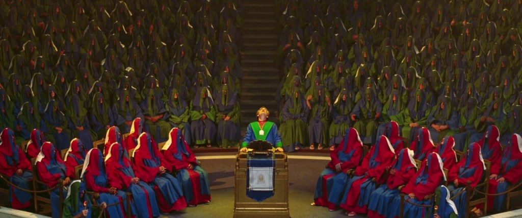 The film incorporates the witty and satirical humor that made Douglas Adams’ work beloved. The Guide, voiced by Stephen Fry, provides humorous and informative insights into the galaxy’s peculiarities, adding a meta-narrative layer to the story. As the group encounters obstacles and absurd challenges, the film explores themes of absurdity, absurd bureaucracy, and the randomness of existence.
