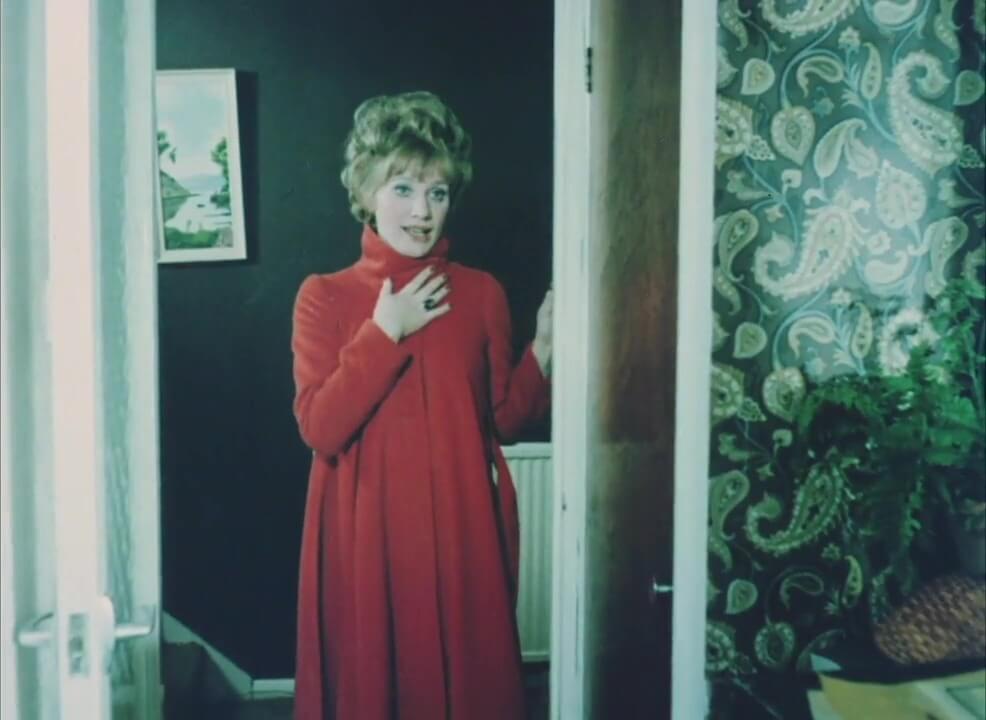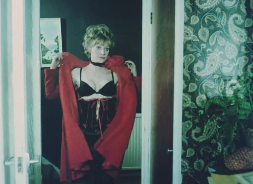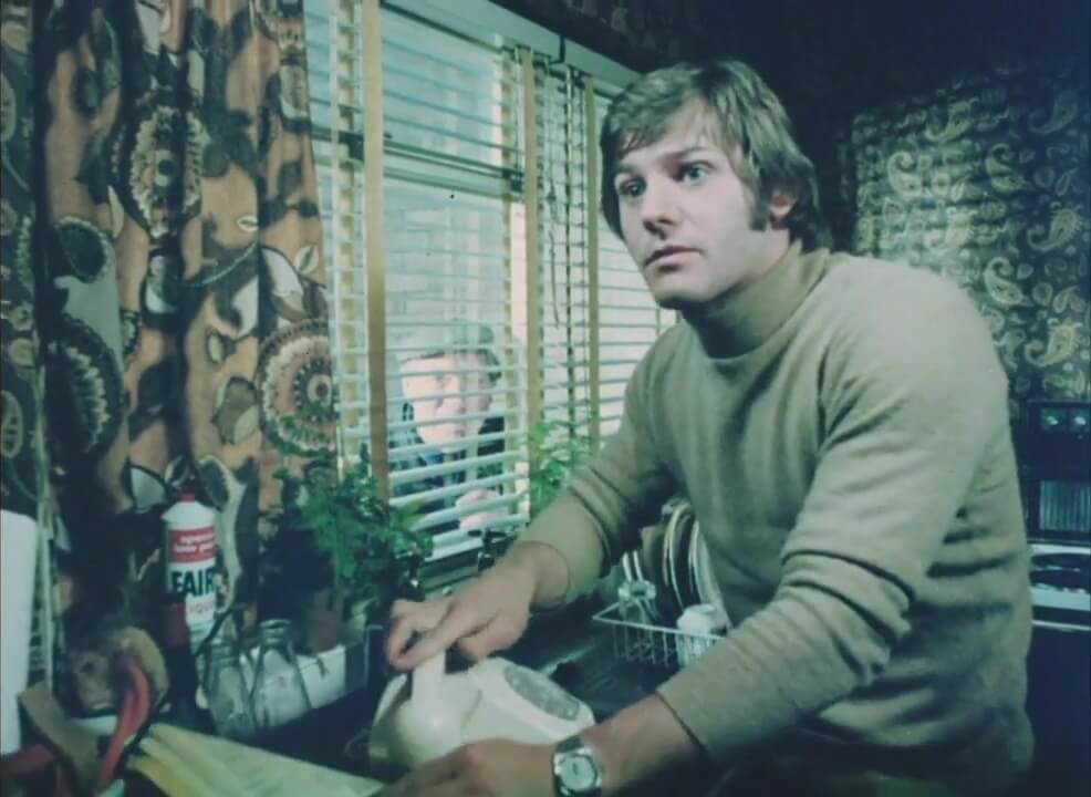 The film starts in a seedy movie theater with Sue and Alan on a date. Sue engages in some naughty business along with some double-entendre dialogue. Upon returning home, we are introduced to Barbra, the babysitter, who promptly parks a firm kiss on Alan’s face. Sue then lays out her demanding plans as the family’s primary earner and insists on being “loved” at least once daily. The film is typically 1970s from the male gaze point of view; the wife earns while the dad is a stay-at-home dad and is allowed to pursue his budding artistic career.