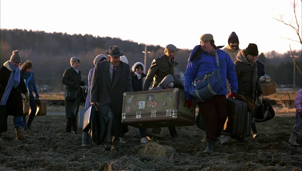 Frustrated and determined to get home, Neal reluctantly teams up with Del Griffith (John Candy), a bumbling and overly talkative shower curtain ring salesman. Del offers to help Neal find alternative transportation, and the two embark on a chaotic journey across the country using various modes of transportation, including planes, trains, and automobiles.