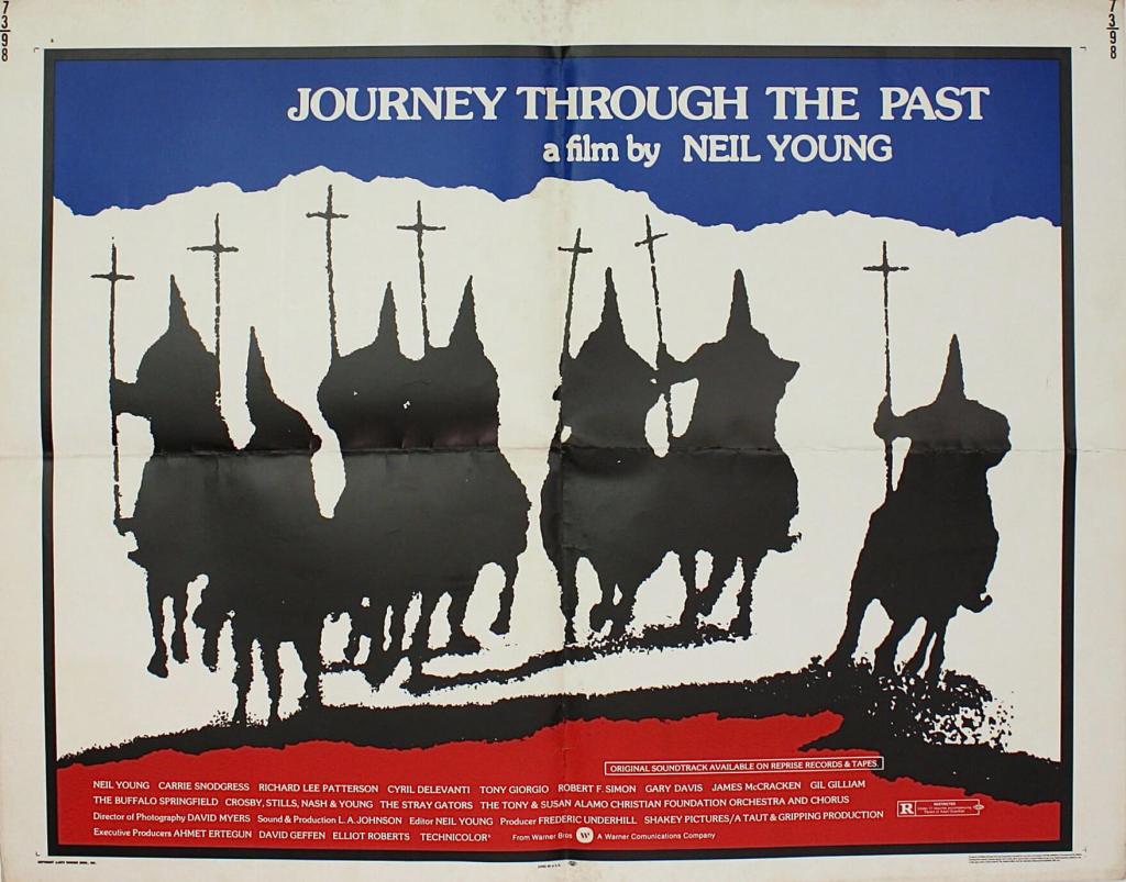 “Journey Through the Past” is a 1974 American film directed by and starring Neil Young. This film serves as a visual and musical collage, capturing a raw and intimate portrait of Neil Young’s career and personal life during the late 1960s and early 1970s. It combines documentary footage, home movies, concert performances, and surreal, symbolic scenes, creating an experimental and non-linear narrative for a film.