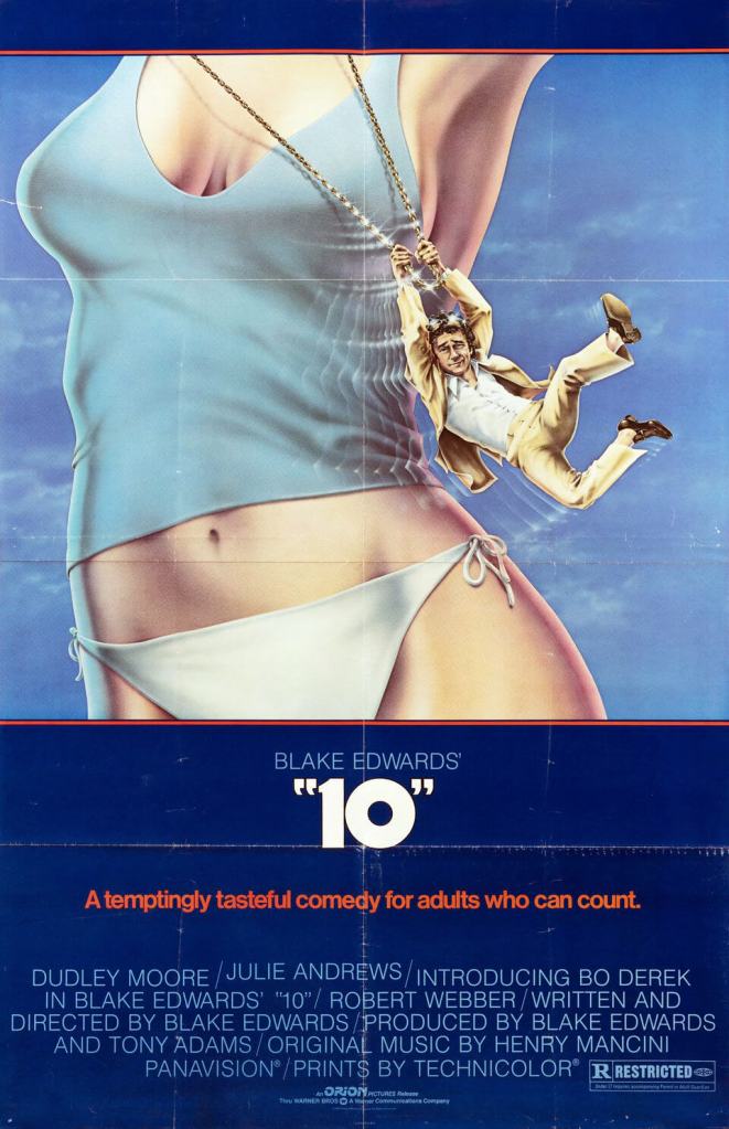 “10” is a 1979 romantic comedy film directed by Blake Edwards. The film stars Dudley Moore, Julie Andrews, Bo Derek, Robert Webber, and Dee Wallace. It explores themes of midlife crisis, obsession, and the pursuit of happiness, all wrapped in a humorous narrative.