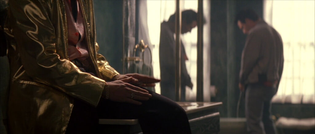 In Los Angeles, Clarence and Alabama seek out Clarence’s old friend, aspiring actor Dick Ritchie (Michael Rapaport), who introduces them to Elliot Blitzer (Bronson Pinchot), a Hollywood contact with connections to a powerful film producer, Lee Donowitz (Saul Rubinek). Clarence sets up a meeting with Donowitz to sell the cocaine, believing this is their ticket to freedom.