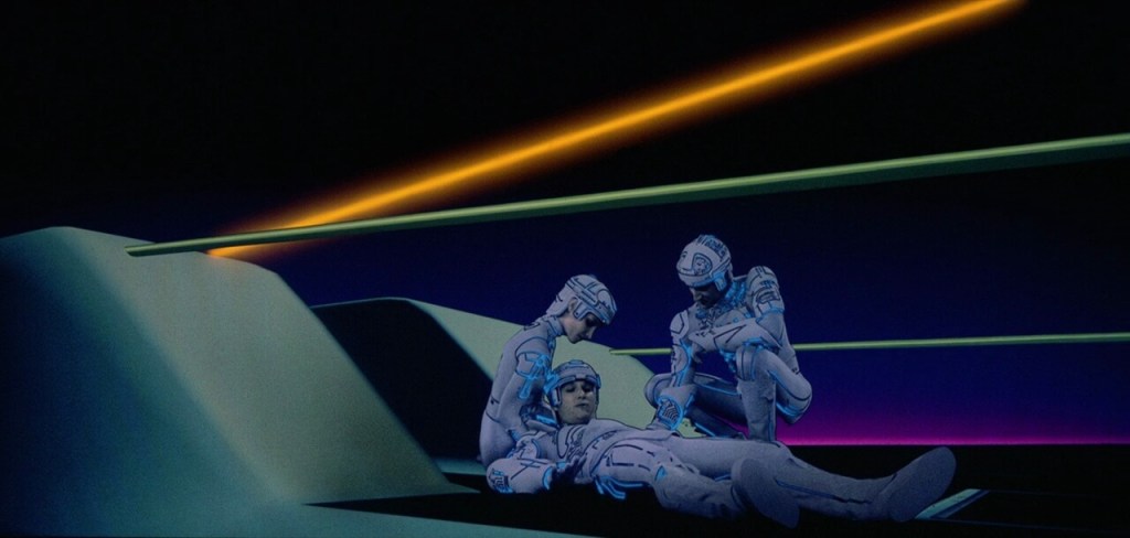 The MCP forces Flynn and other captured programs to participate in gladiatorial games where they must compete in deadly contests such as Light Cycle races and Disc Wars. Flynn, Tron, and Ram (Dan Shor), a friendly actuarial program, escape these games and embark on a mission to liberate the digital world from the MCP’s control. Along the way, Flynn discovers he can manipulate the digital world in ways that the native programs cannot due to his human origin.