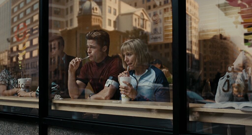 Katie decided to file for divorce, and, on the advice of her lawyer, she copied all of Osbourne’s financial records and personal files onto a CD. However, this CD is accidentally left at a gym, Hardbodies, where it is discovered by two employees: the dim-witted but ambitious personal trainer Chad Feldheimer (Brad Pitt) and his co-worker, the desperate-for-cash Linda Litzke (Frances McDormand), who dreams of affording multiple cosmetic surgeries.