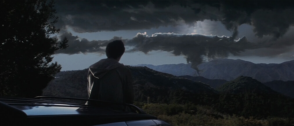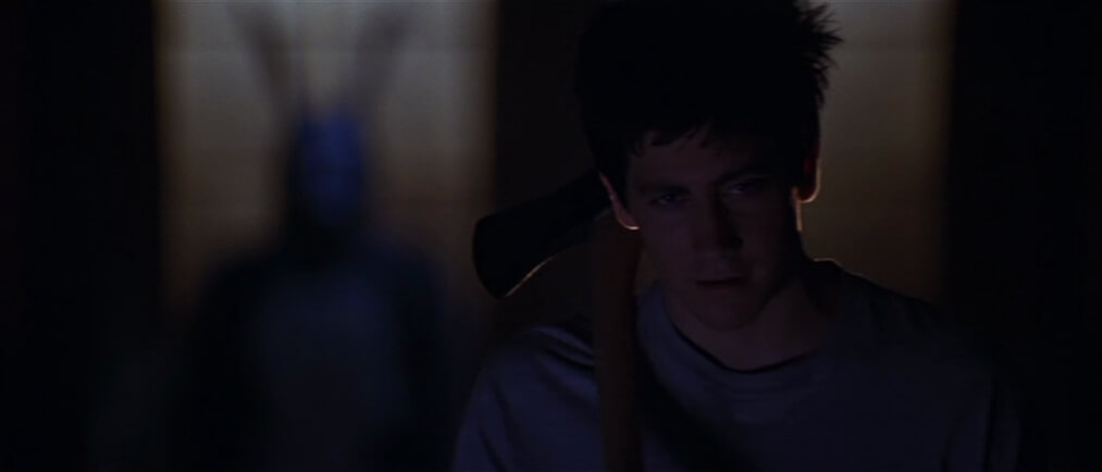 One night, Donnie is awakened by a mysterious figure named Frank (James Duval) in a creepy rabbit costume. Frank informs Donnie that the world will end in 28 days, 6 hours, 42 minutes, and 12 seconds. That same night, a jet engine inexplicably falls from the sky and crashes into Donnie’s bedroom, which he narrowly escapes thanks to his sleepwalking episode.