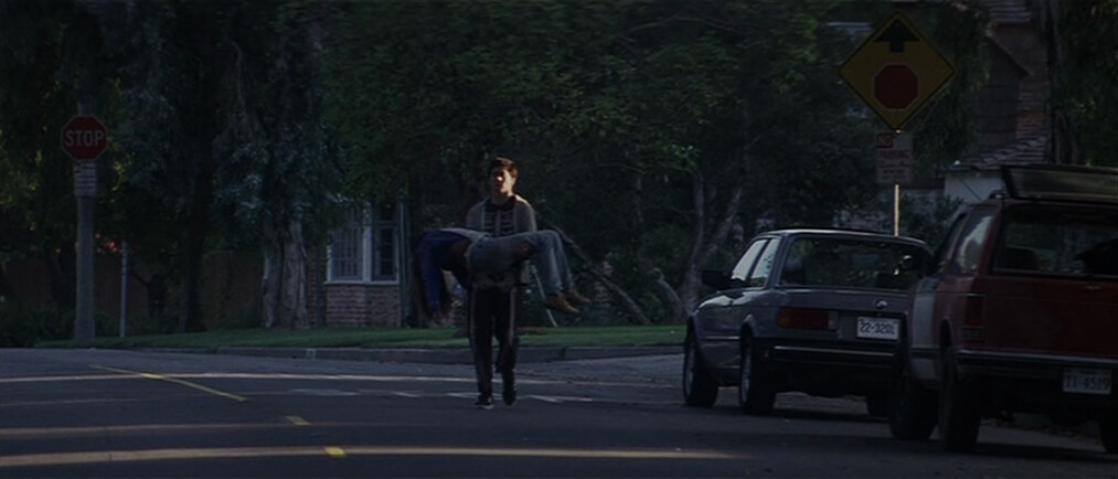 As the predicted apocalypse count continues, Donnie’s behavior becomes increasingly erratic and violent. He starts seeing Frank more frequently, who influences him to commit a series of destructive acts, such as flooding his high school and burning down the house of local motivational speaker Jim Cunningham (Patrick Swayze), who is later revealed to be a pedophile.