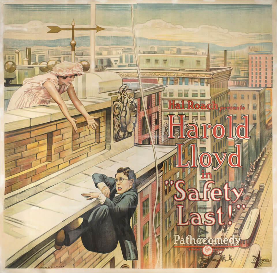 The film concludes with Harold and Mildred embracing their love, which is strengthened by the trials and tribulations they have endured. Harold’s ambition and daring have brought him success and proven his devotion to Mildred. “Safety Last!” is one of the most beloved silent-era films and a defining work in Harold Lloyd’s career. The film’s mix of humor, romance, and suspense, combined with Lloyd’s fearless stunts, made it a huge box office success and cemented Lloyd’s status as one of the great comedians of early cinema, alongside Charlie Chaplin and Buster Keaton. The clock-hanging scene has become one of the most iconic images in film history, symbolizing the blend of comedy and danger that characterized Lloyd’s work and the physicality that made him a silent screen star.