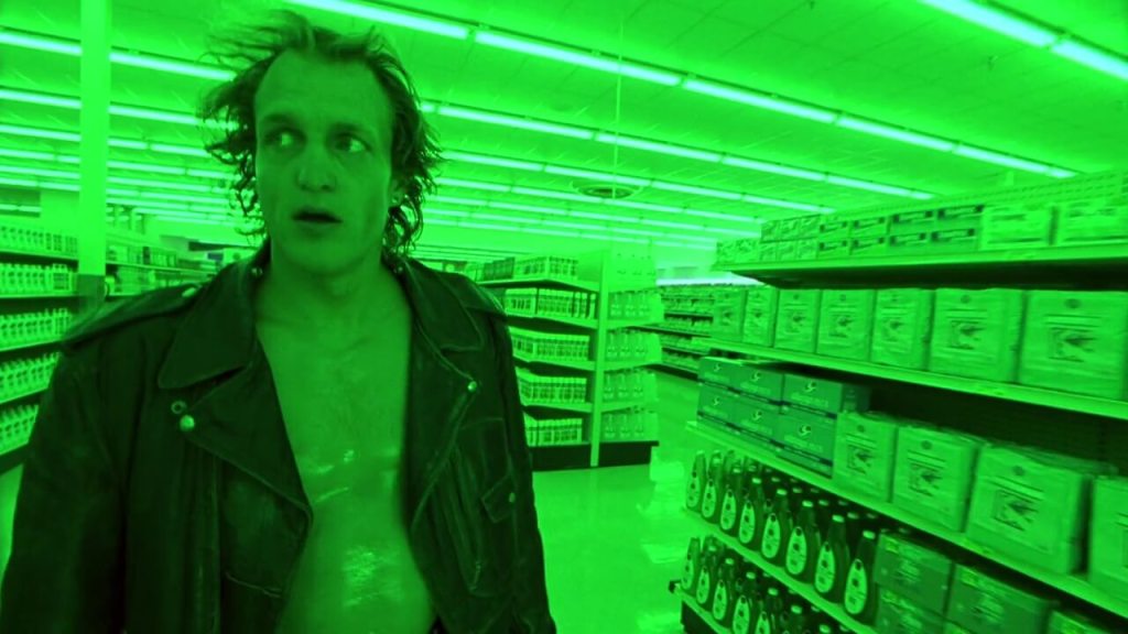 The film is divided into segments, portraying their killing spree through different stylistic lenses. Mickey and Mallory’s crimes are shown through various cinematic techniques, including rapid editing, shifting color schemes, animated sequences, and surreal, dreamlike visuals. This heightened style emphasizes the media’s distortion of their actions, turning violence into entertainment.