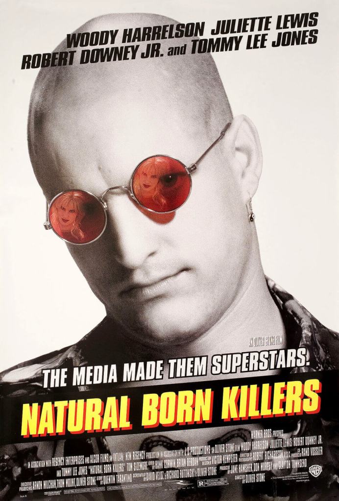 “Natural Born Killers” (1994) is a controversial crime thriller directed by Oliver Stone and starring Woody Harrelson as Mickey Knox and Juliette Lewis as Mallory Knox, a young, violent couple who embark on a killing spree across America. The film is based on a story by Quentin Tarantino and explores themes of media sensationalism, violence, and the cult of celebrity.