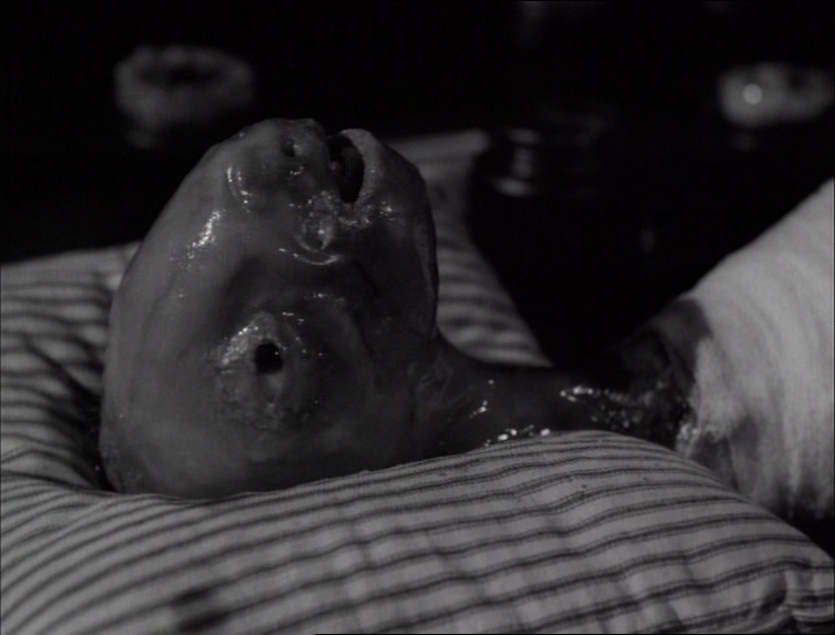 The child, a grotesque and alien-like creature wrapped in bandages, constantly cries and shrieks. Overwhelmed by the responsibilities of fatherhood, Henry reluctantly agrees to marry Mary. The couple move into Henry’s small, claustrophobic apartment, where the cries of the mutant baby drive Mary to a nervous breakdown. She eventually leaves, abandoning Henry alone with the creature.