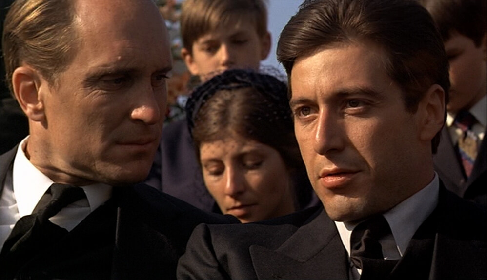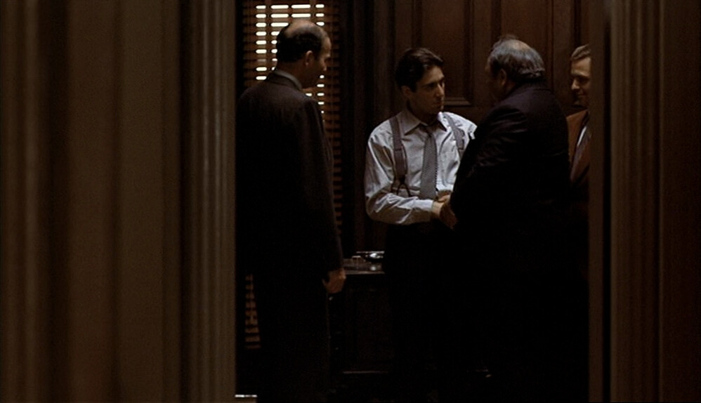 In the film’s iconic final scene, Kay, who has married Michael, questions him about his involvement in the killings. Michael lies, assuring her of his innocence, but the door closes on her, both literally and metaphorically, as Michael’s men kiss his hand and acknowledge him as “The Godfather.”