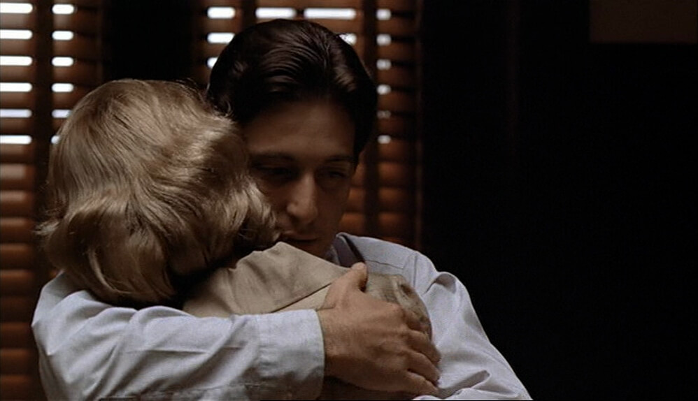 In a dramatic turning point, Michael, who has fallen in love with Kay Adams (Diane Keaton) and envisions a life outside the family business, volunteers to kill Sollozzo and the corrupt police captain McCluskey (Sterling Hayden), who is protecting him. Michael’s transformation begins here, as he kills both men in a daring ambush, forcing him to flee to Sicily to avoid retaliation. While in exile, Michael falls in love with and marries a young Sicilian woman, Apollonia (Simonetta Stefanelli), but she is tragically killed in a car bombing meant for him. This loss hardens Michael further, preparing him for the eventual role he will play upon his return.