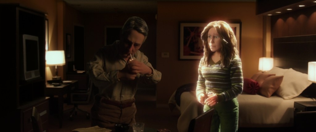 However, as the night progresses, cracks begin to form in Michael’s idealized perception of Lisa. His obsession with finding something extraordinary and unique ultimately leads him to impose unrealistic expectations on her. By morning, Michael’s perception of Lisa started to shift, and she began to sound and look more like everyone else, her voice gradually merging back into Tom Noonan’s. The magic and individuality he initially saw in her fade as Michael’s own deep-seated dissatisfaction and psychological issues resurface, making it impossible for him to maintain the idealized connection he so desperately wanted.