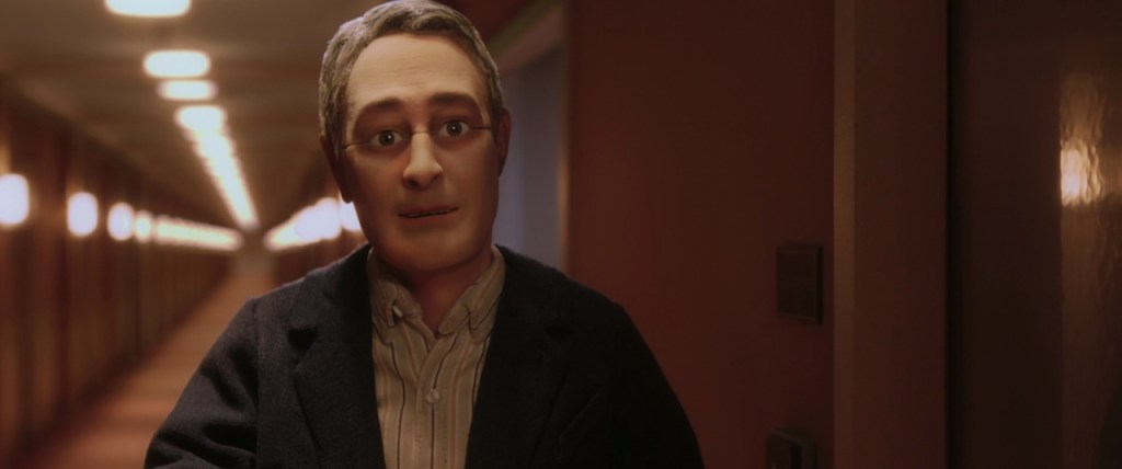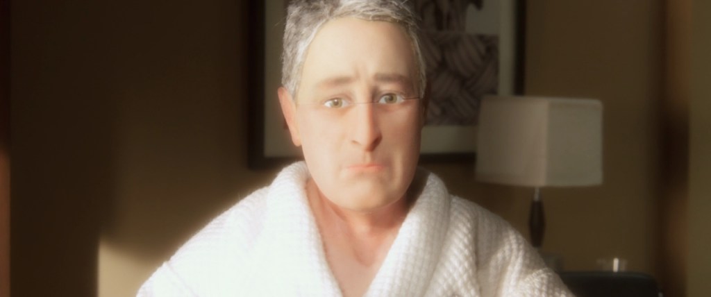 The story centers on Michael Stone (voiced by David Thewlis), a middle-aged, self-help author and customer service expert who travels to Cincinnati to give a talk on improving interpersonal communication in business. Despite his expertise, Michael is deeply unsatisfied with his life, viewing the world as dull and repetitive. To him, everyone appears and sounds the same; every character, regardless of gender or age, has the same face and the same voice (all voiced by Tom Noonan). This strange sameness heightens Michael’s alienation, making his world feel like an unending blur of indistinguishable interactions.