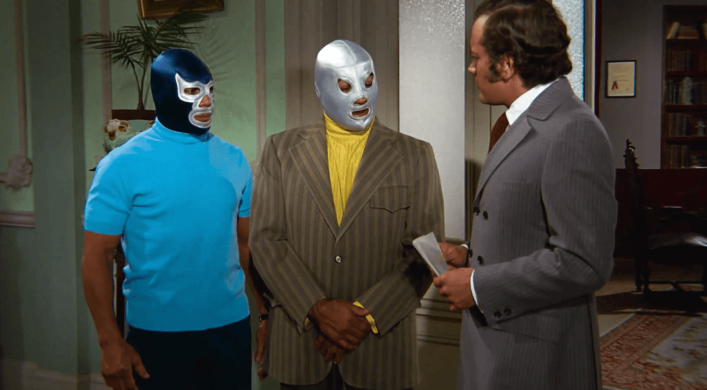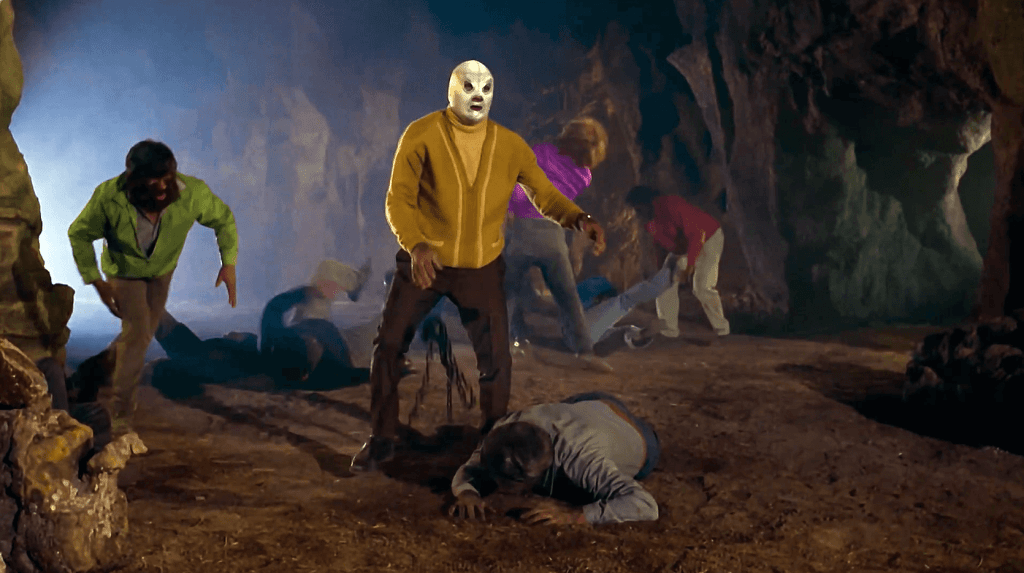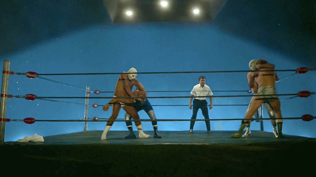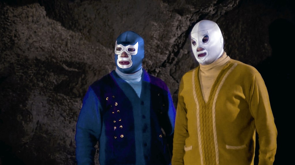 ‘Santo y Blue Demon vs. Drácula y el Hombre Lobo‘ (Santo and Blue Demon vs. Dracula and Wolfman)(1973), a Mexican lucha libre horror film starring legendary masked wrestlers Santo and Blue Demon.