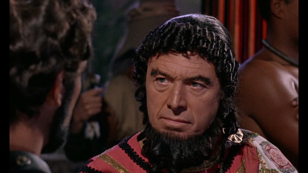 Upon reaching Colchis, Jason meets the beautiful priestess Medea (Nancy Kovack), who falls in love with him and decides to help him steal the Golden Fleece. However, King Aeëtes (Jack Gwillim), ruler of Colchis, refuses to part with it and secretly plans to kill Jason and his crew.