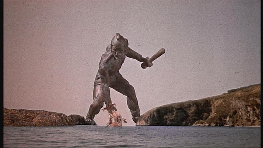 Their first challenge comes when they land on the Isle of Bronze, where they encounter a massive statue of the titan Talos. Ignoring Hera’s warning, Hercules and Hylas steal a treasure from the temple of the gods, angering Talos, who comes to life and attacks. In a desperate battle, Jason discovers Talos’s weakness—a small plugin on its ankle—and dislodges it, causing the titan to collapse. However, Hylas is crushed beneath the fallen statue, leaving Hercules heartbroken, and he chooses to stay behind.
