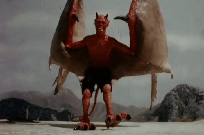 As they attempt to leave, the group is confronted by Asmodeus (Jack Woods), a seemingly friendly yet sinister park ranger who is, in fact, a demonic entity disguised in human form. Asmodeus seeks to obtain a mysterious book and unleashes monstrous creatures to terrorize the friends. These include a giant, stop-motion animated ape-like creature, a demonic winged gargoyle, and an enormous tentacled entity known as “The Giant.”