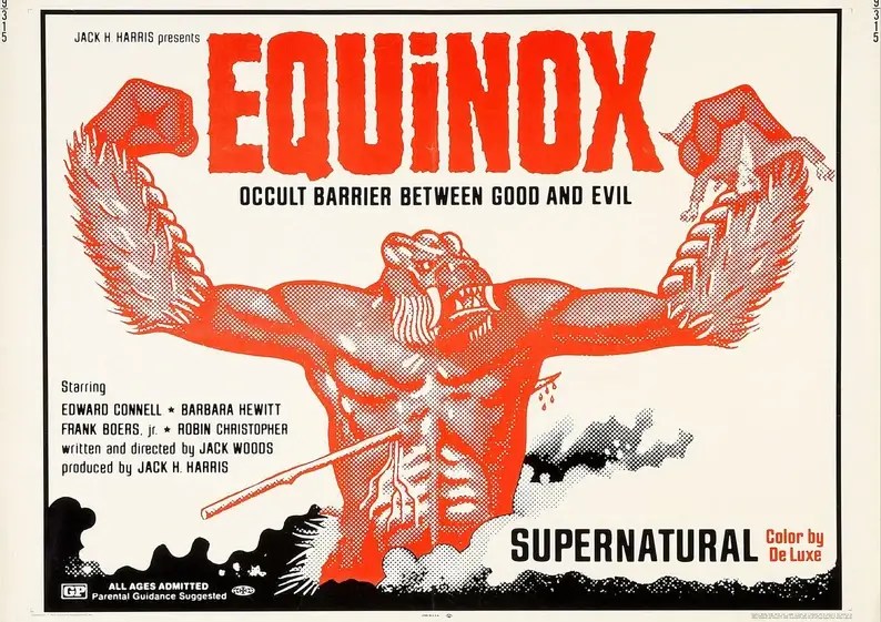 Equinox (1970) is an American independent horror fantasy film directed by Jack Woods and Dennis Muren, starring Edward Connell, Barbara Hewitt, Frank Bonner, and Robin Christopher. Originally filmed as a 1967 short titled The Equinox…A Journey into the Supernatural, the project was expanded into a feature-length film and released in 1970.