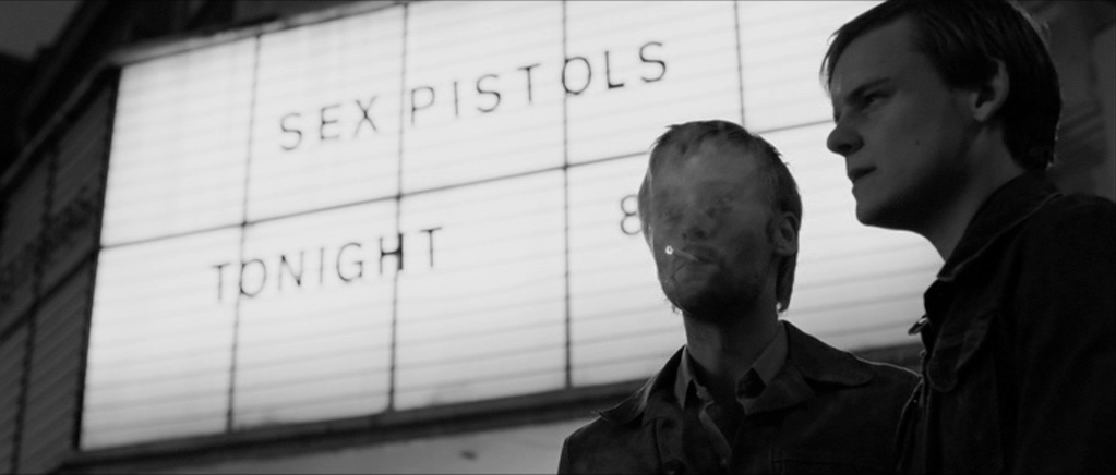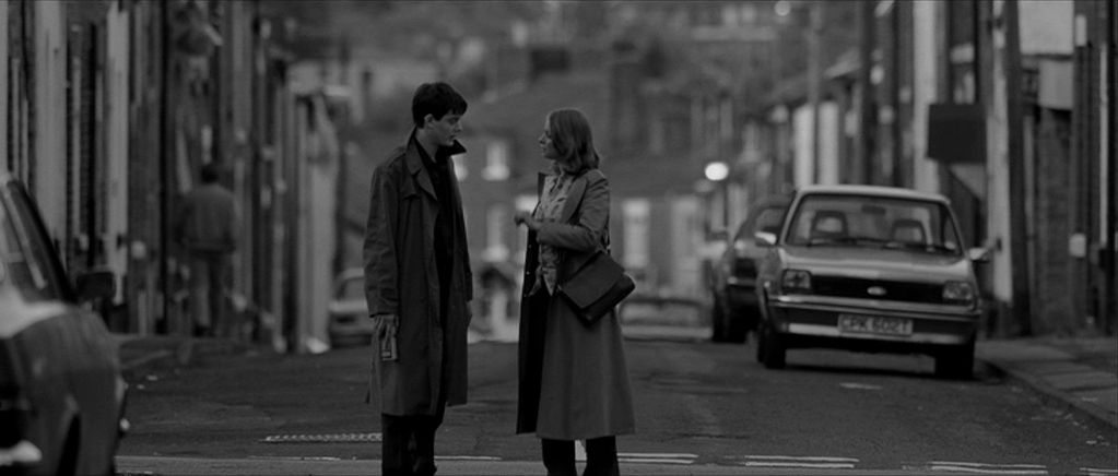 The film closes with Joy Division’s “Atmosphere” playing over a somber funeral procession and a final shot of Deborah standing alone, symbolizing the void left by Ian’s passing.