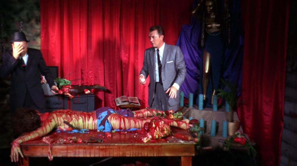 We are then introduced to Fuad Ramses (Mal Arnold), an Egyptian caterer who owns a small, exotic food shop. Unbeknownst to his customers, Ramses is a devoted servant of the ancient goddess Ishtar and has been murdering women to collect body parts for a “Blood Feast”—a ritual meant to resurrect his deity through human sacrifice.