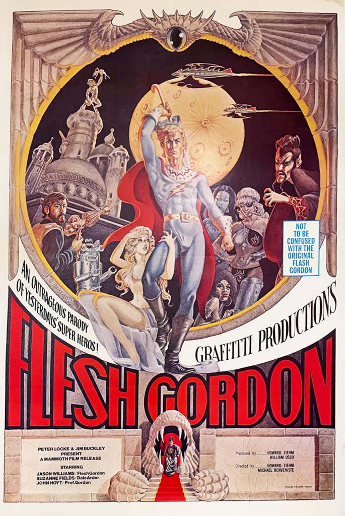 Flesh Gordon (1974) is a satirical, softcore erotic sci-fi adventure film directed by Michael Benveniste and Howard Ziehm. A parody of the 1930s Flash Gordon serials, the film combines comedy, adventure, and explicit sexual humor, featuring deliberately campy dialogue, stop-motion animation, and exaggerated special effects.