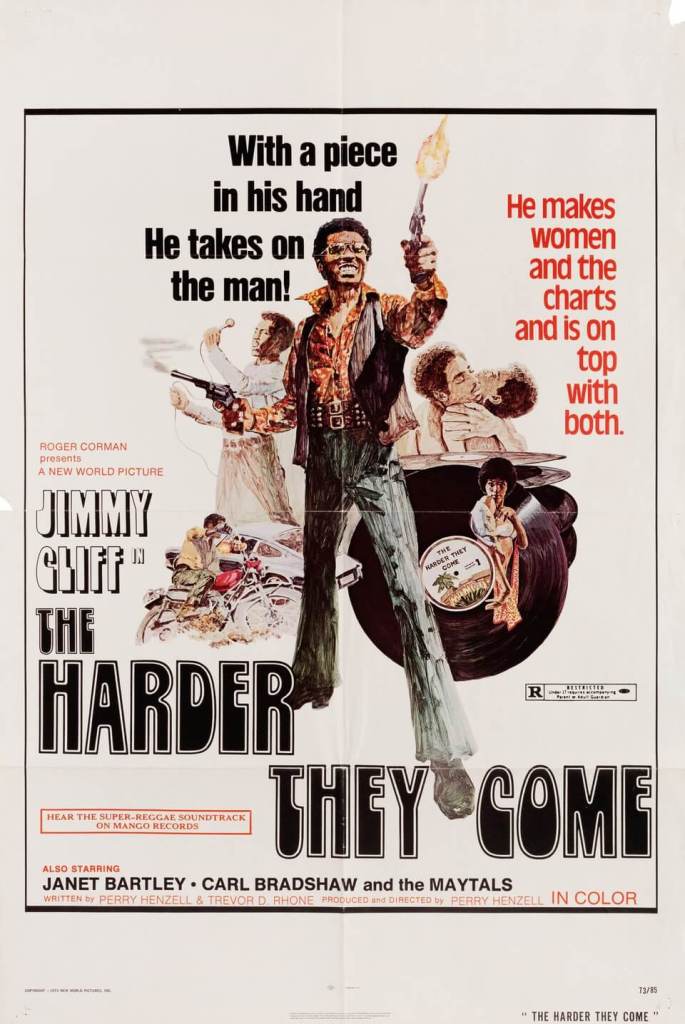 “The Harder They Come” is a 1972 crime drama directed by Perry Henzell and written by Henzell and Trevor D. Rhone. Based in Jamacia, the film blends gritty realism, social commentary, and reggae music, starring reggae musician Jimmy Cliff in a career-defining role. The film follows a young country boy’s desperate struggle for success in Kingston, only to become an outlaw and a folk hero.