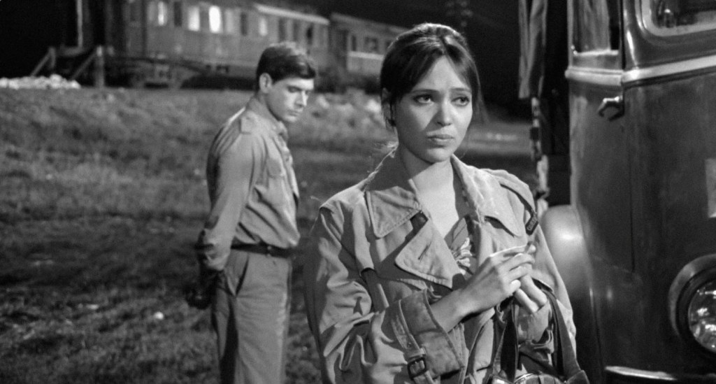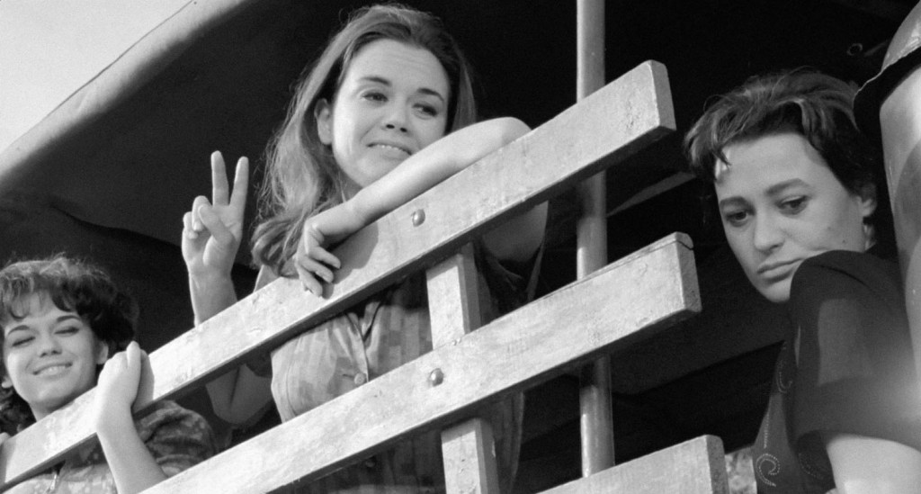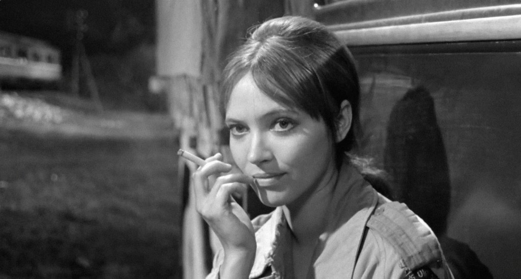 One night, the group finds shelter in abandoned railway carriages, where the men pair off with some of the women. The pragmatic Castagnoli partners with the older and more realistic Ebe, played by Valeria Moriconi. Martino is attracted to the forthright Eftichia, portrayed by Marie Laforêt, who has strong opinions on life. However, he is also approached by the gentle Elenitza, played by Anna Karina, who seeks to avoid conflict. The following day, a lorry full of Blackshirts drives by, and their leader, a war hero from Spain, requests one of the girls. After traveling a few kilometers, Martino’s group comes across the aftermath of an attack: the Blackshirts’ lorry and their prostitute, all killed by Partisans. Alessi becomes enraged at the gruesome scene and hysterically vows revenge.