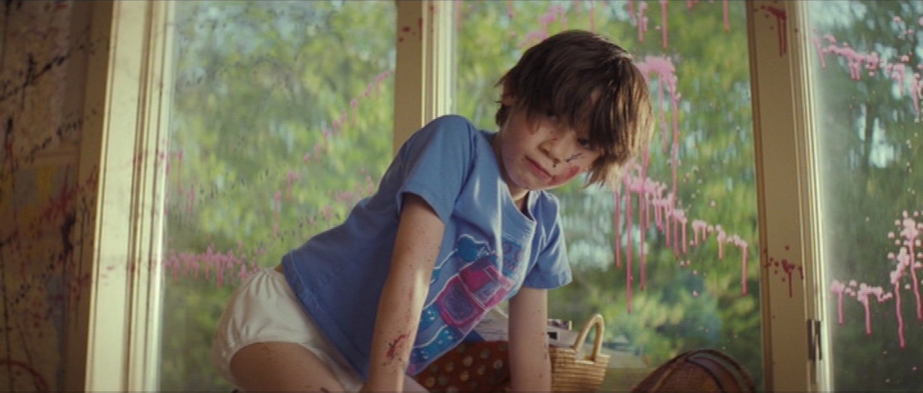 The flashbacks reveal Kevin’s early years, marked by emotional detachment, manipulation, and cruelty. As a young child, Kevin (played by Jasper Newell) is complex and unmanageable, making Eva’s maternal instincts feel inadequate. Eva struggles to connect with him despite her efforts, while her husband Franklin (John C. Reilly) remains oblivious or in denial about Kevin’s troubling nature. Kevin grows older, and his behavior becomes even more sinister, with him showing a deep capacity for violence and control. His teenage years (played by Ezra Miller) are marked by a complete lack of empathy, and he becomes increasingly hostile towards Eva.