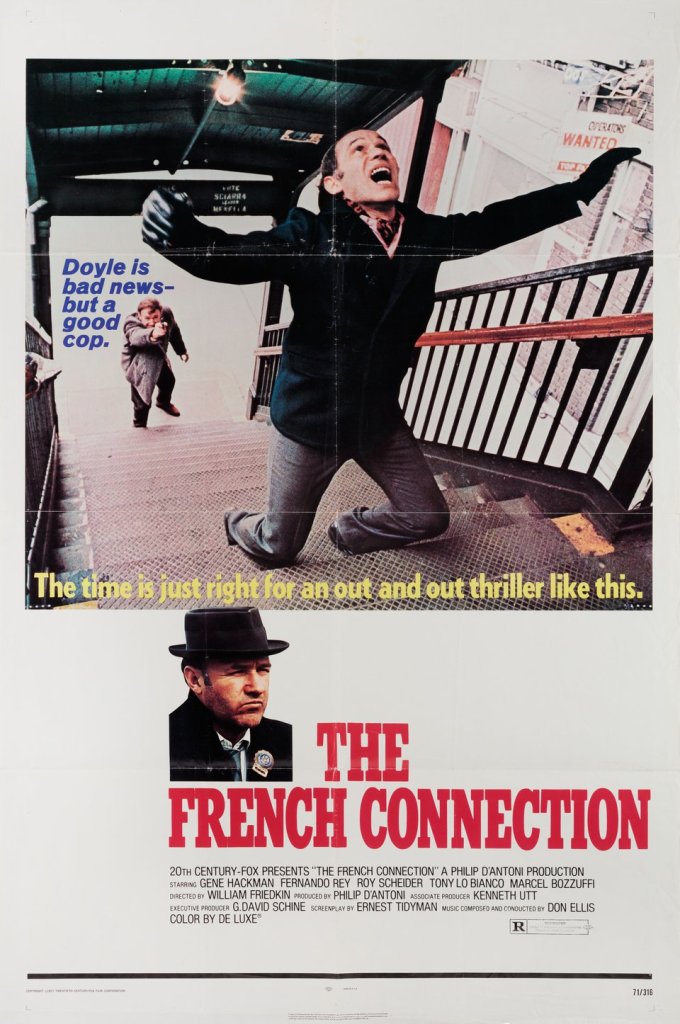 “The French Connection” is a crime thriller directed by William Friedkin and based on Robin Moore’s non-fiction book. Released in 1971, the film is renowned for its gritty realism, intense action sequences, and portrayal of a tense, hard-nosed police investigation. It is often regarded as one of the greatest American films of its era and won multiple Academy Awards, including Best Picture, Best Director, and Best Actor for Gene Hackman’s portrayal of Detective Jimmy “Popeye” Doyle.
