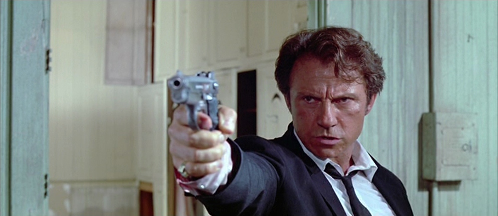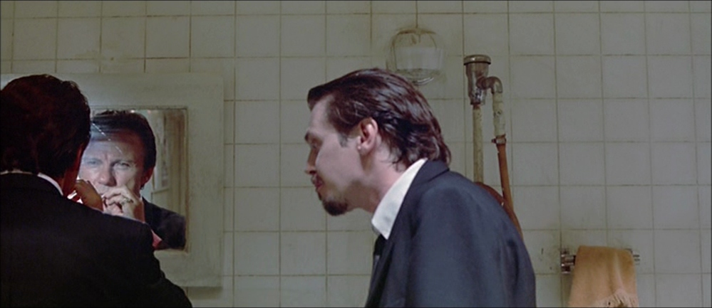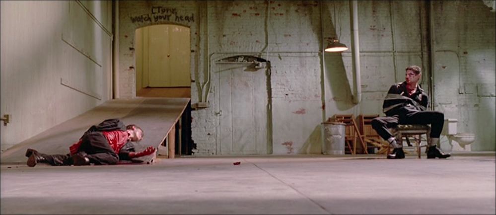 Back in the present, Mr. Blonde arrives at the safehouse, dragging with him a kidnapped police officer, Marvin Nash. Blonde, seemingly unfazed by the botched heist, insists they wait for Joe Cabot before making any drastic moves. As tensions rise, Blonde’s sadistic nature is revealed when he tortures Marvin Nash, slicing off his ear while dancing to “Stuck in the Middle with You” by Stealers Wheel. Just as Blonde is about to set Nash on fire, Mr. Orange, summoning his last reserves of strength, shoots him dead, revealing his true allegiance.
