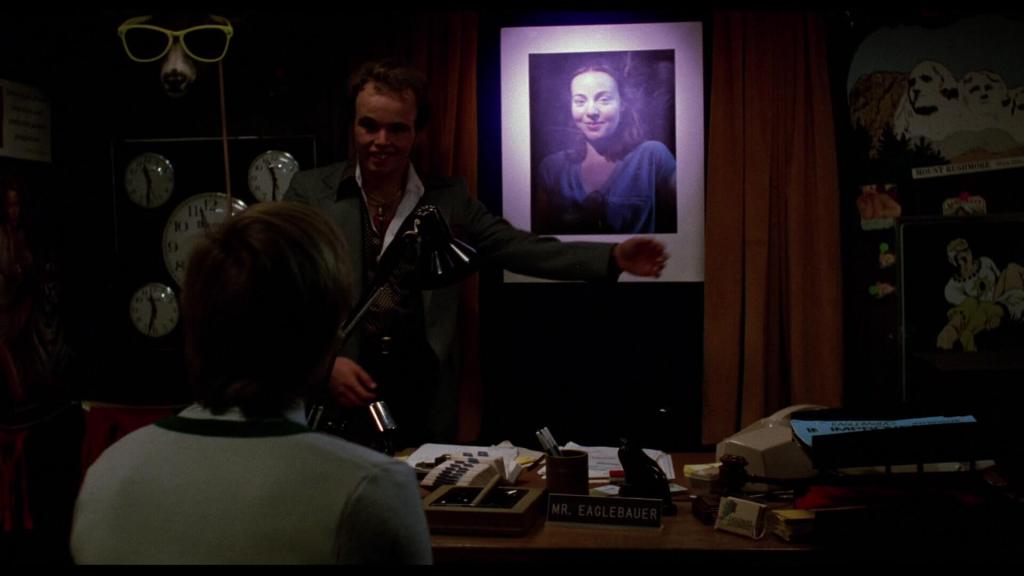 Riff’s best friend, the bookish and timid Kate Rambeau (Dey Young), has her own struggles—she harbors a crush on the clueless jock Tom Roberts (Vincent Van Patten), who remains oblivious to her affections. Meanwhile, the mischievous entrepreneur Eaglebauer (Clint Howard) runs a black-market operation from the boys’ bathroom, offering everything from fake hall passes to dating advice.