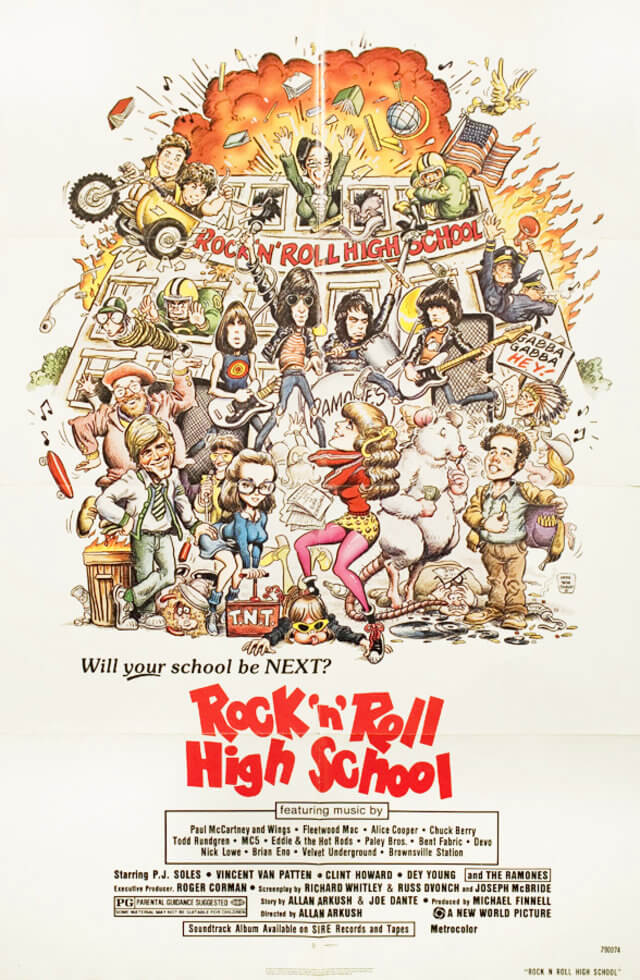 Rock’ n’ Roll High School (1979) is a musical comedy directed by Allan Arkush, with contributions from Joe Dante. The film stars P.J. Soles, Vincent Van Patten, Clint Howard, Mary Woronov, Paul Bartel, and The Ramones. It blends rebellious teenage antics with the raw energy of punk rock. Known for its zany humor, over-the-top characters, and iconic soundtrack, the film has become a cult classic.