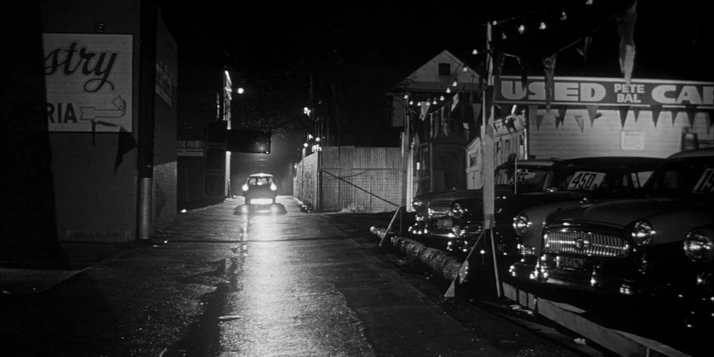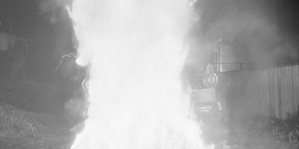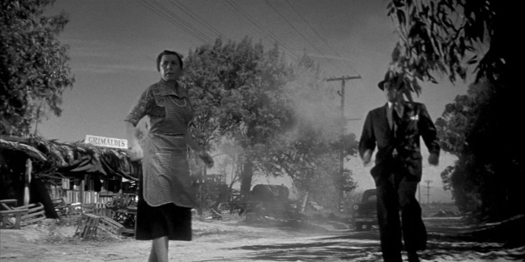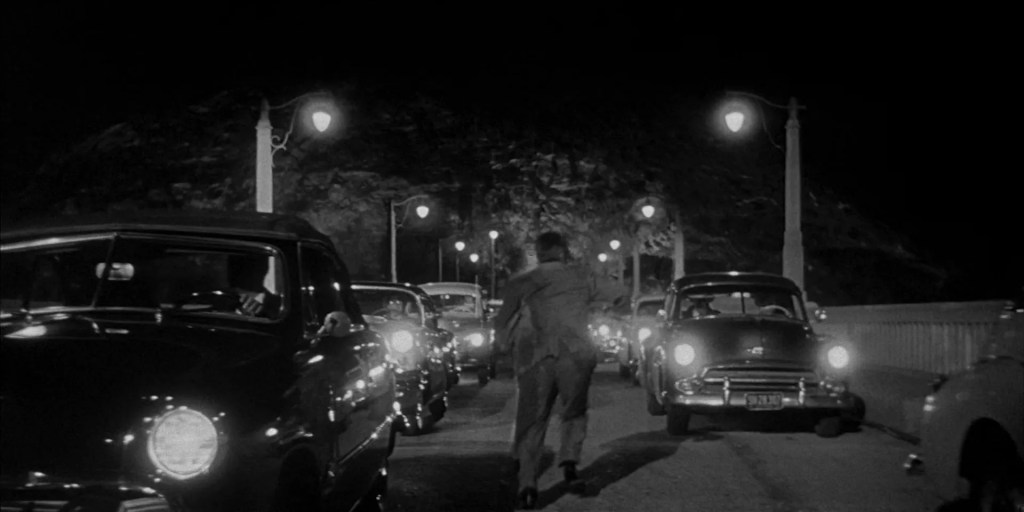 In the film’s climactic sequence, a frantic and exhausted Miles runs into traffic on a California highway, screaming, “They’re here already! You’re next!” as cars pass him by in disbelief—a chilling warning that no one may be safe from the insidious alien threat.