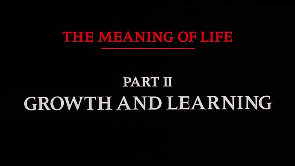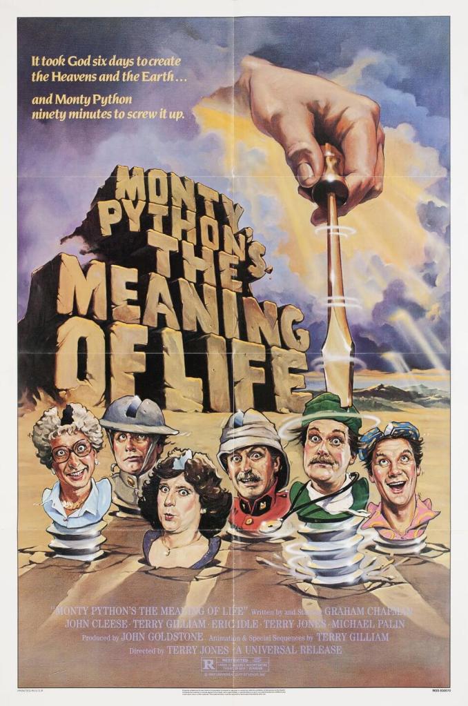 Monty Python’s The Meaning of Life is a 1983 sketch-based satirical comedy that attempts—with tongue firmly in cheek—to answer one of the most profound philosophical questions of all time: What is the meaning of life? Directed by Terry Jones with the animated sequences directed by Terry Gilliam, who also directed the opening short film “The Crimson Permanent Assurance.” The film stars the Monty Python members John Cleese, Terry Gilliam, Terry Jones, Eric Idle, Michael Palin, and Graham Chapman, all playing multiple roles. It is told through a series of absurd, darkly comedic vignettes. It loosely follows the stages of life from birth to death, with diversions into war, religion, sex, gluttony, and the afterlife. Each segment skewers a different institution or social norm, using the Monty Python troupe’s trademark surrealism, musical numbers, and slapstick.