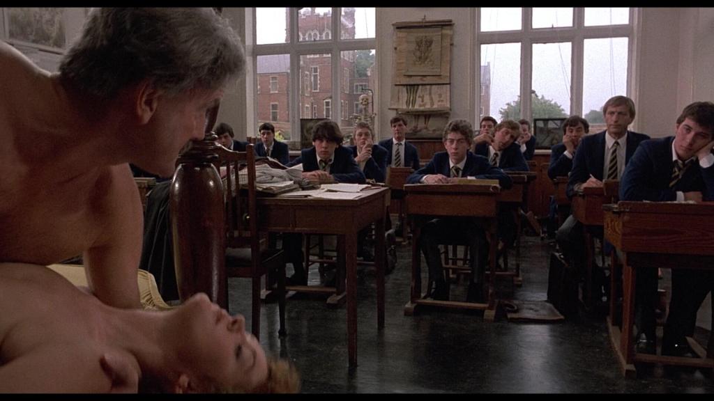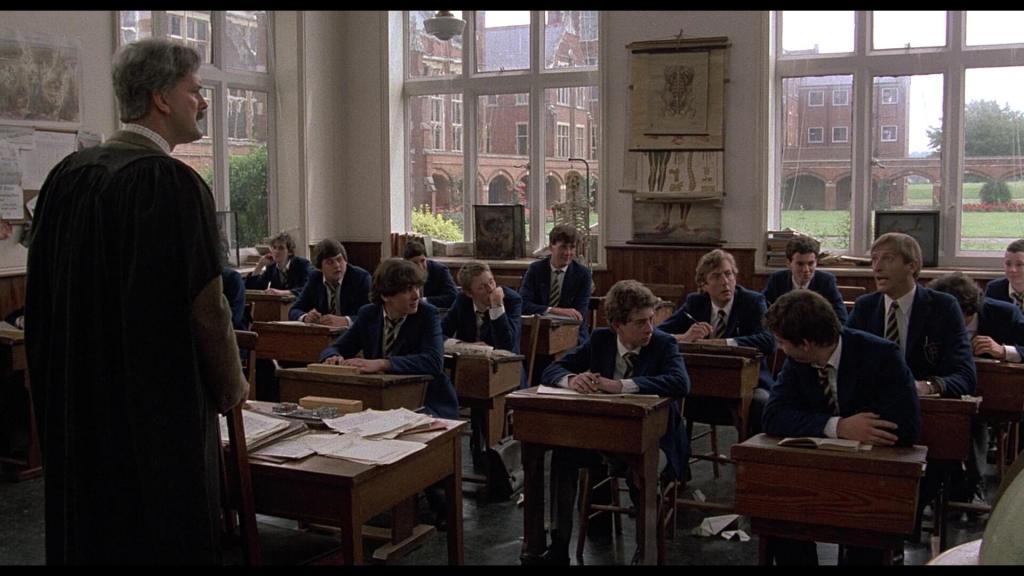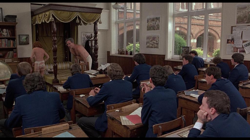 In a painfully dull British public school, boys are subjected to military drills and sex education involving a live demonstration by their teacher. Meanwhile, nearby students are blown up in a rugby match with soldiers.