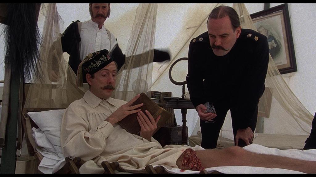 A World War I officer tries to bring birthday gifts to his troops amid an attack. This becomes a commentary on the absurdity of war, colonialism, and British stoicism.